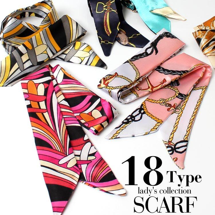 スカーフ レディース 18タイプ ツイリースカーフ サテン素材 チェーン
