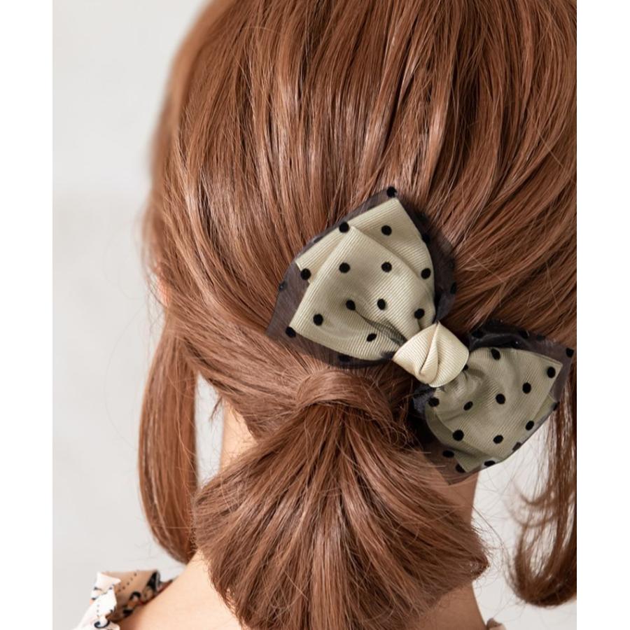 再販 大人可愛い オーガンジー素材のリボンバレッタ ブラック ヘア