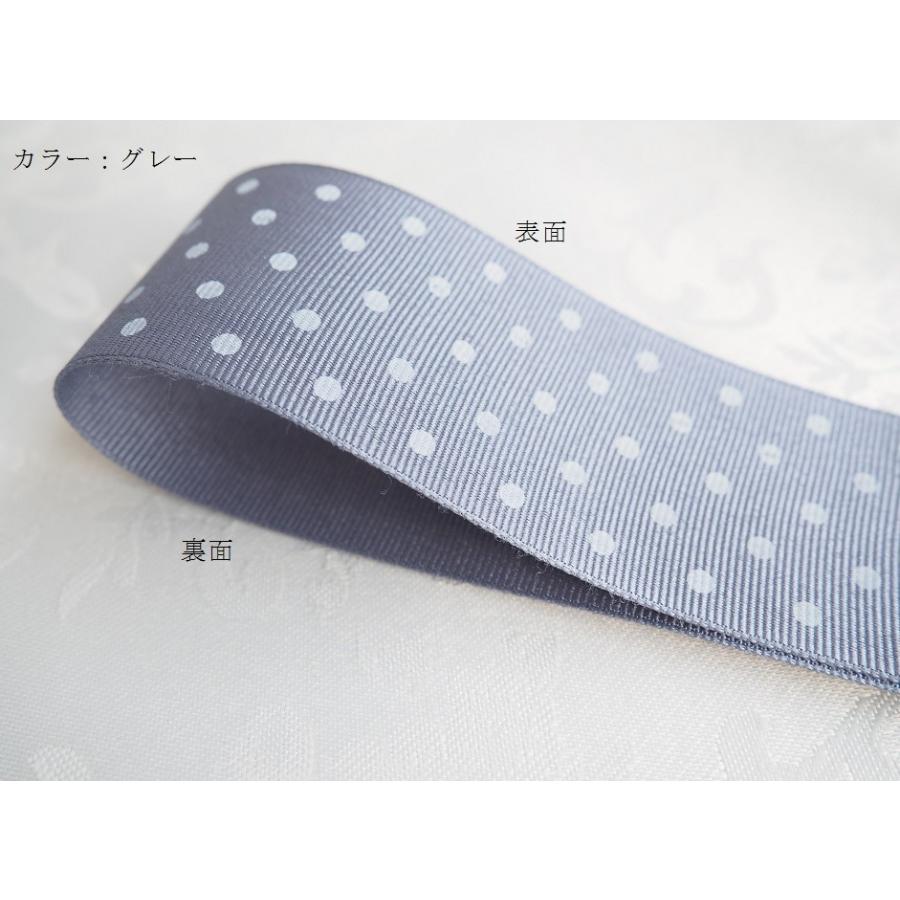 送料120円 リボン素材 グログラン ドット柄 カラー グレー 40mm幅