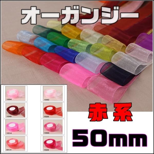 オーガンジー 幅50mm 10cm 販売 47色ラインナップ 赤系 切売 ヘアー