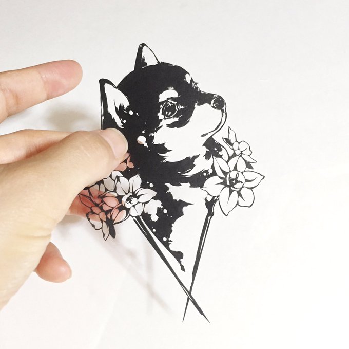 切り絵 ワンコ4 お花と柴わんこ Shareart