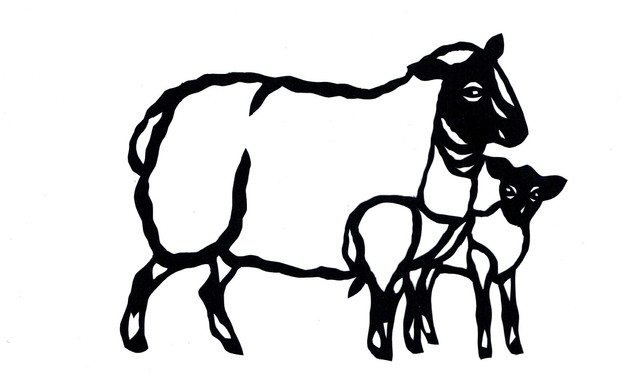 無料イラスト 切り絵風羊の親子