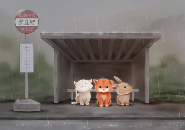 六月バス停雨宿り Fulio さんのイラスト ニコニコ静画 イラスト